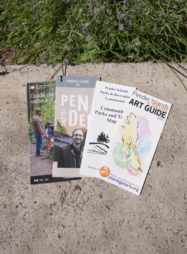 The Chamber supports visitors and promotes regenerative tourism on the island. We operate the Pender Island Visitors Centre in partnership with the SGI Community Resource Centre and the SGI Neighbourhood House, and work with the Southern Gulf Islands Tourism Partnership to promote the region. This work connects closely with our summer Ambassador Program, helping visitors plan their stay and learn about local businesses. We also host the 24/7 information kiosk at the Driftwood Centre, maintain the Welcome to Pender sign, and produce the Pender Island Visitors Guide and local maps, ensuring visitors have the information they need to enjoy all that Pender has to offer.